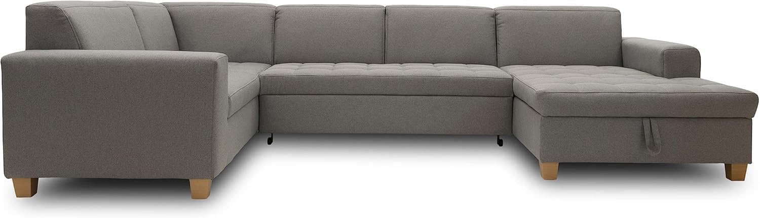 DOMO. collection Sugar - Sofá con función de Descanso, diseño Moderno, Forma de U, 162 x 333 x 199 cm, Color Gris Claro