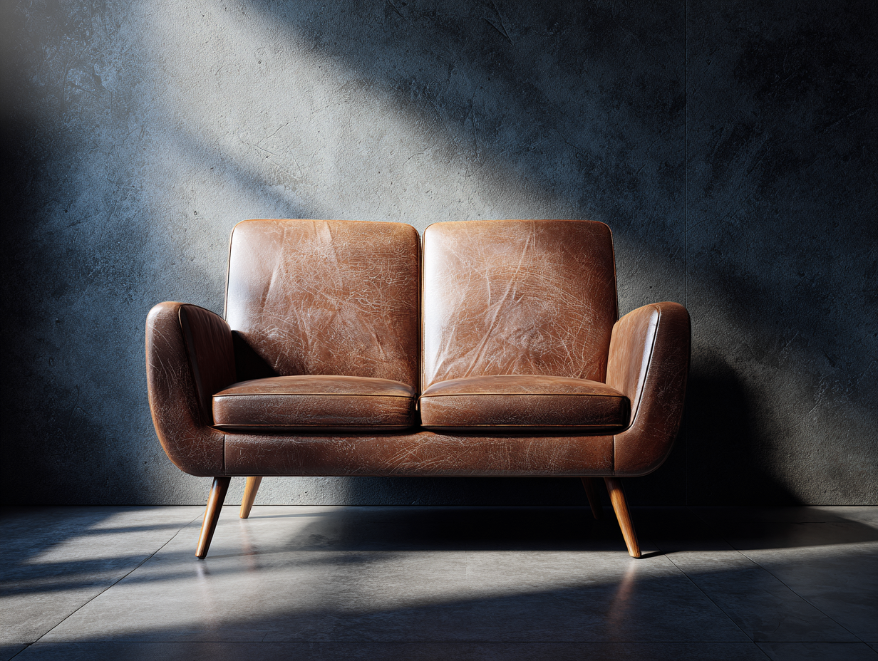 Sofá 2 plazas de cuero auténtico 165x90x55 cm - marrón - para salón - diseño contemporáneo