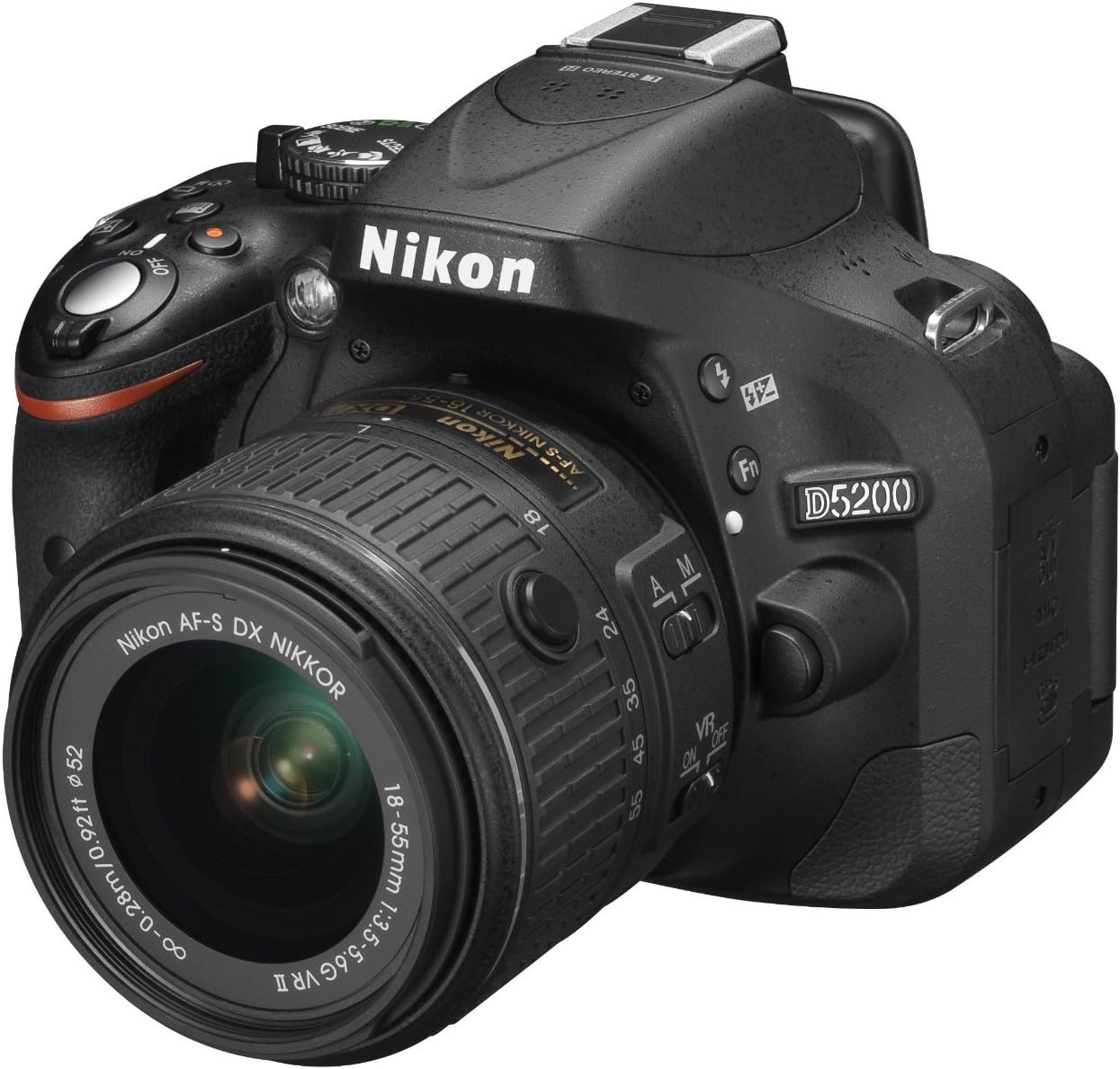 Nikon D5200 - Cámara réflex Digital de 24.1 MP Pantalla 3", estabilizador óptico, grabación de vídeo, Negro - Kit con Objetivo Nikkor AF-S DX 18-55 mm f 3.5 VR II