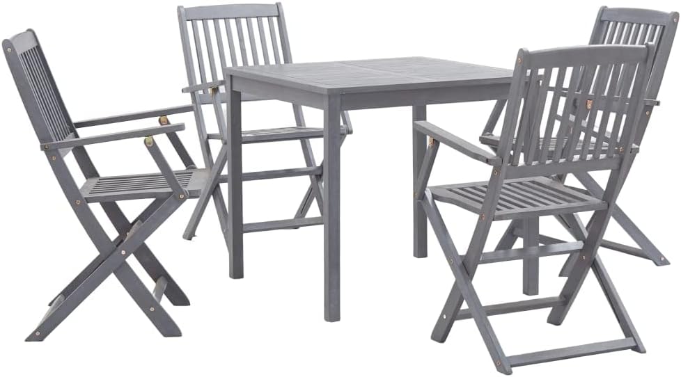 vidaXL Juego de Comedor de Jardín 5 Piezas Patio Terraza Conjunto Casa Exterior Sillones Aire Libre Mesa Silla Asientos Gris Madera Maciza Acacia