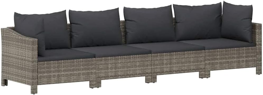 vidaXL Set de Muebles de jardín 4 pzas y Cojines ratán sintético Gris, Juego de Muebles de jardín, Muebles de Exterior, Juego de sofás