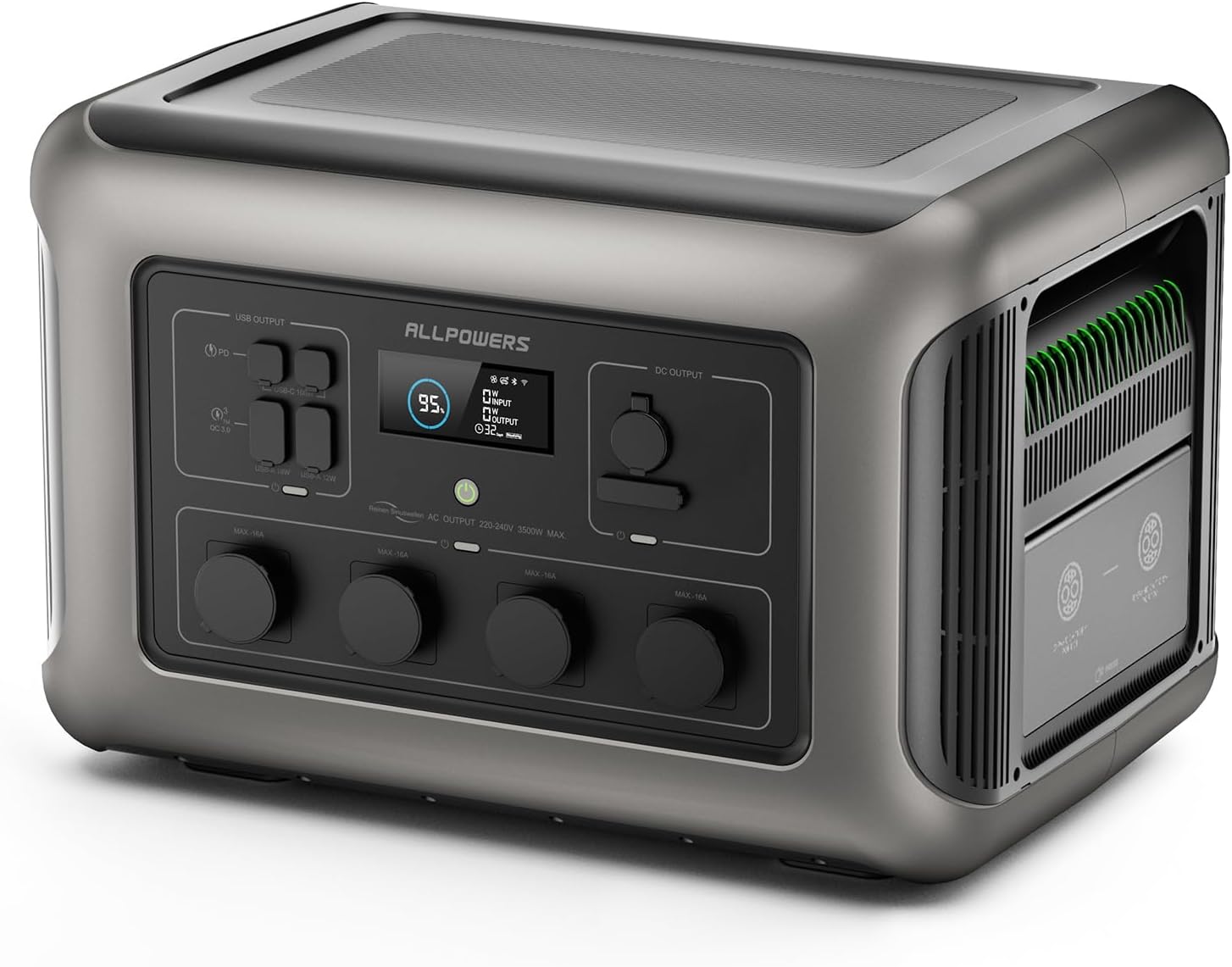 ALLPOWERS R3500 Estación de energía portátil, 3168Wh 3500W 7000W pico Generador solar con batería LiFePO4, 4xCA y UPS, carga rápida en 1,5 horas para el hogar, emergencias, camping y autocaravana