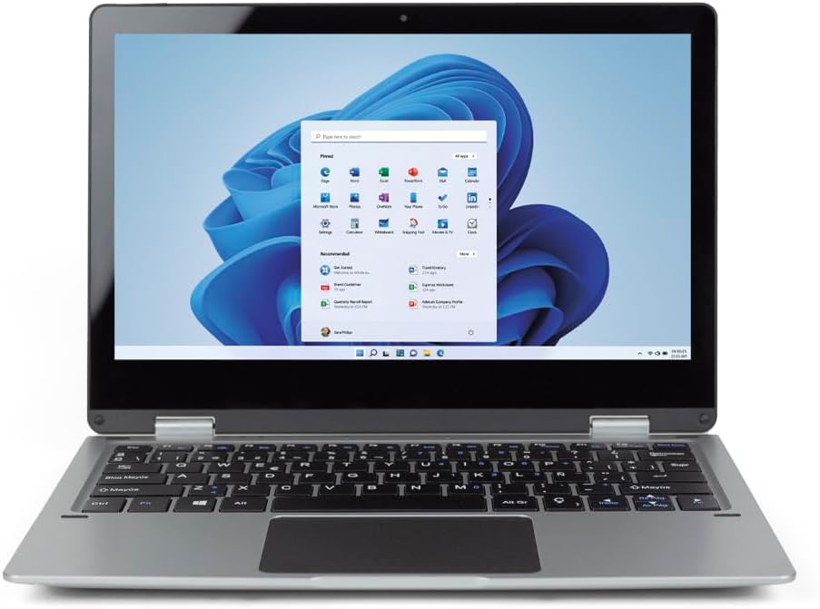 PRIXTON Ordenador Portátil Convertible Flex Pro con Pantalla Táctil de 11.6, Windows 11 Home, Procesador Intel Celeron N4020, Memoria 4GB RAM 128GB, Teclado en Español