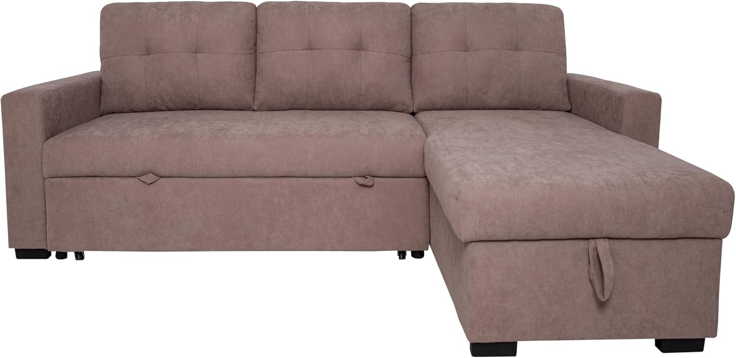 Sofa 3 Plazas Chaiselongue Ojuel, Chaiselonge Intercambiable, Asientos y Respaldo Acolchados, Sofa Chaiselongue Cama con Arcon, Sofas de Salón Modernos, Color Beige