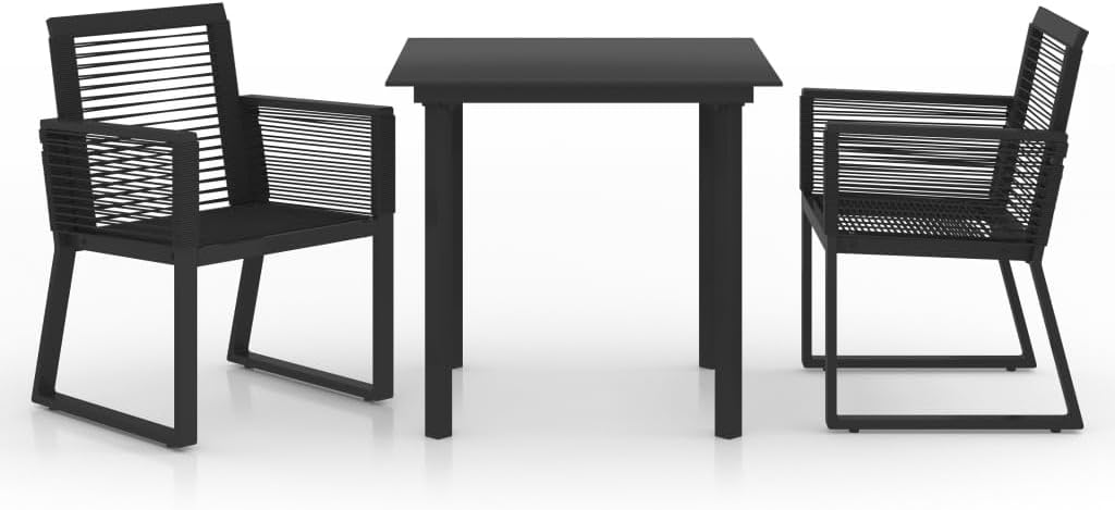 vidaXL Juego de Comedor de Jardín 3 Piezas Mobiliario Muebles Hogar Terraza Exterior Silla Mesa Asiento Decoración con Respaldo Ratán PVC Negro